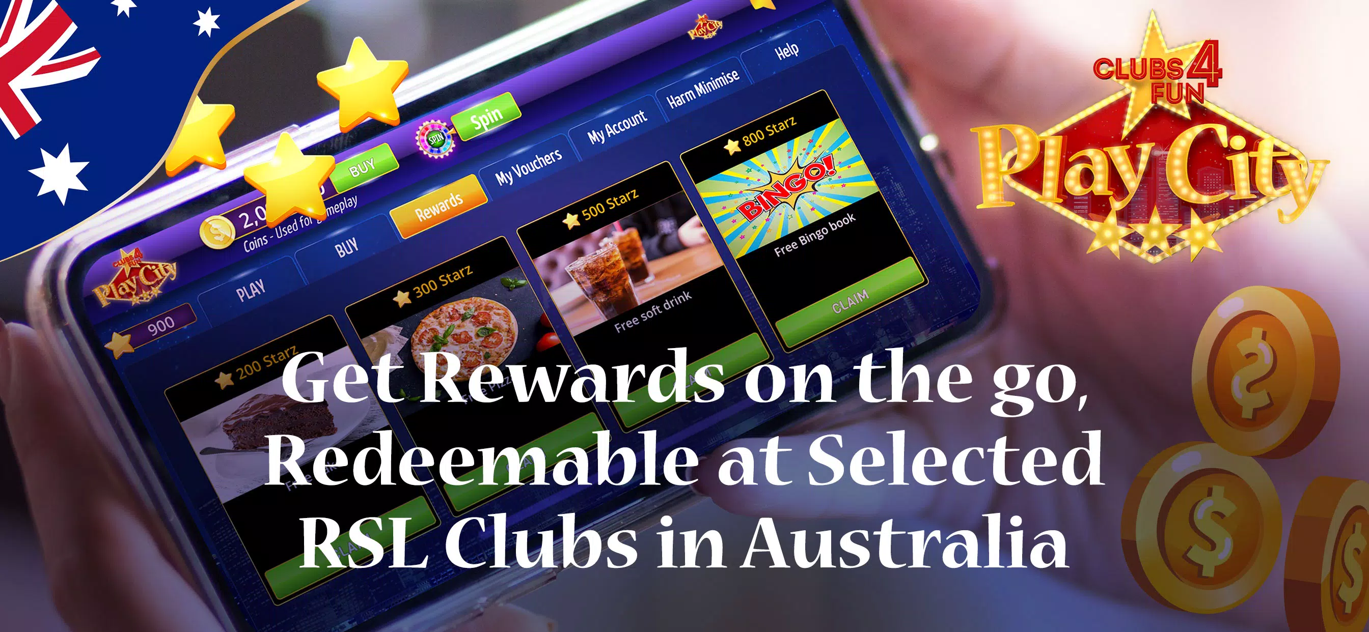С Play City наслаждайтесь любимыми играми в казино в любое время, где угодно! Не нужно посещать RSL & Social Club или тратить на бензин. Мы приносим вам фантастический выбор слотов и казино игры прямо к кончикам пальцев.