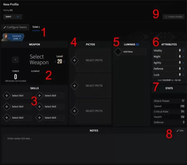 使用 Maxroll 的 Expedition 33 建構工具來打造並分享流派。規劃工具的關鍵功能包括: